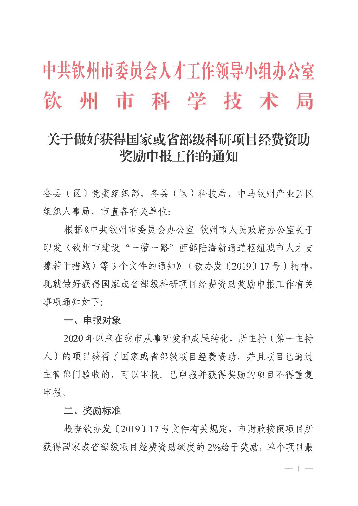 关于开展2025年度钦州市科学研究与技术开发计划项目申报工作的通知